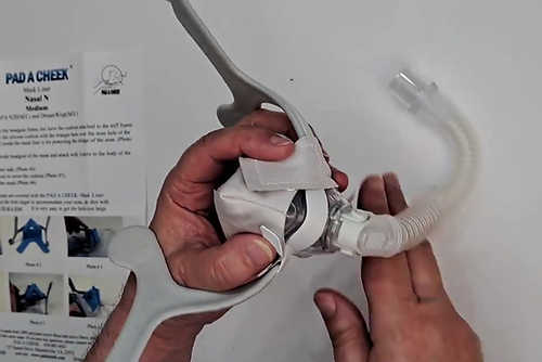 The PAD A CHEEK mask liners are designed to prevent contact dermatitis from the cushion of the mask. The mask liner also should help prevent the marks from the mask cushion. The material is moisture wicking to absorb oil and sweat and lengthen the life of the cushion. Many people have told me that they also reduce the leaks, but that is a happy accident. The mask liner wraps securely around the mask and is designed to stay on the mask whenever you remove the mask in the night or in the morning. There is a nose bridge pad sewn into the mask liner to help prevent redness to that area.